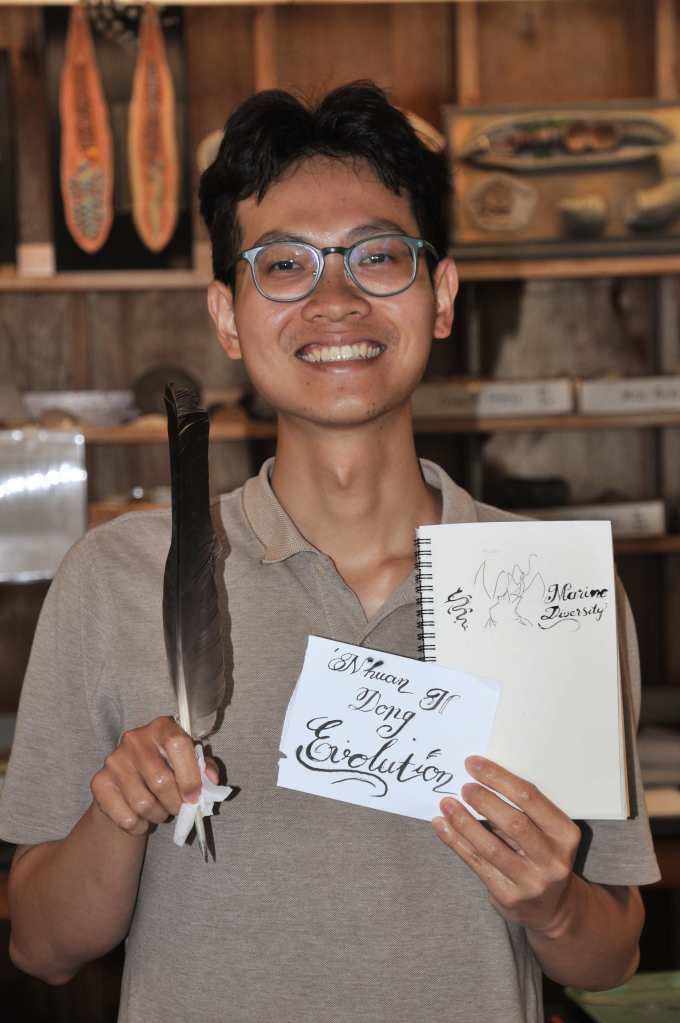 To 10-year-old Nhuan, thinking he would be a fashion designer: You wouldn’t know how much you’ve “evolved.” Look at what you’re writing with a gull feather pen in hand, twelve years later, on an island off the coast of America!